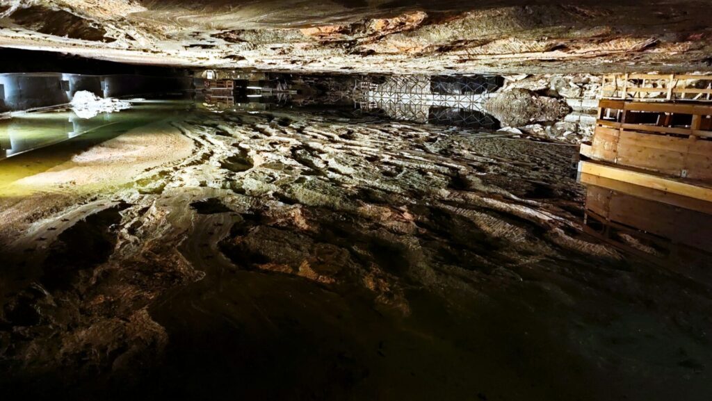 Wir rutschten die alten Bergwerksrutschen hinab und staunten über Jahrhunderte alte Technik. Auf einem Floss erkundeten wir den unterirdischen See.